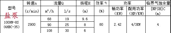 100HW混流泵的性能參數